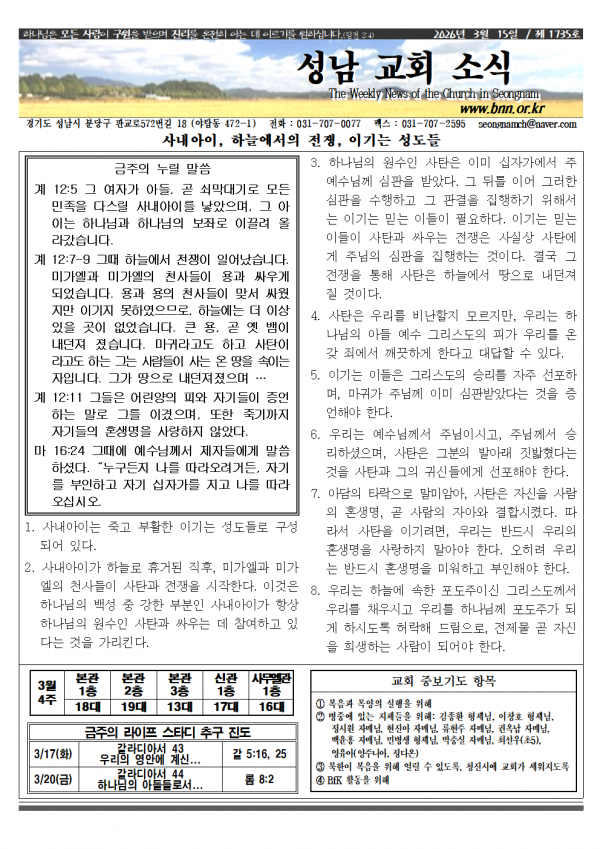 소식지_20260315 성남교회 0 62 3시간전 2026.03.14 10:48 소식지2603151.hwp (230.5K) + 5 2026.03.14 07:32 소식지260315.pdf (289.8K) + 3 2026.03.14 07:32 주중추구집회추구양식신청서중국어집회.hwp (50.0K) + 2 2026.03.14 07:36 주중추구집회추구양식신청서중국어집회.pdf (151.2K) + 1 소식지_20260315