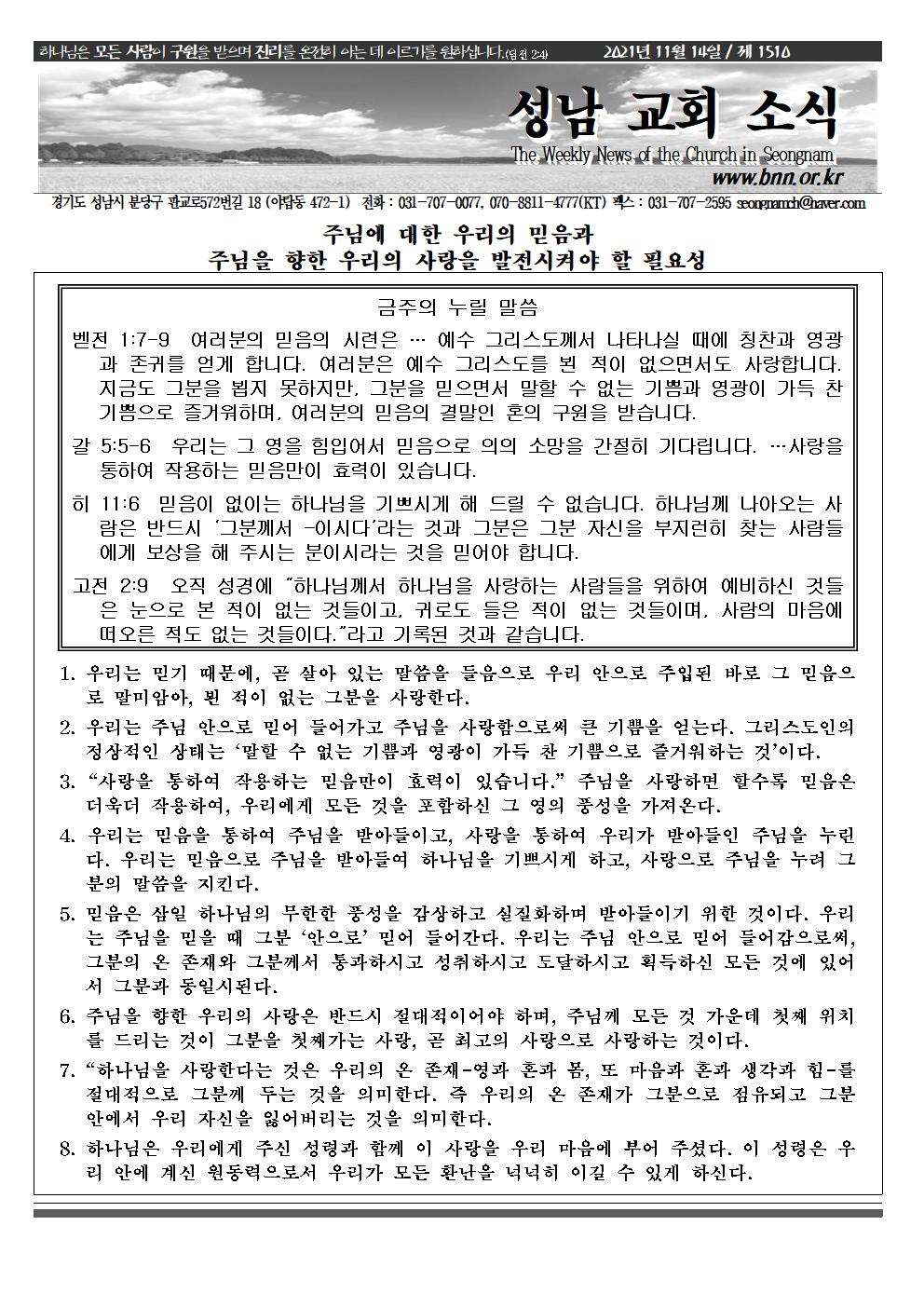 2021.11.14 성남교회 0 4655 2021.11.12 21:31 2021.11.12 21:31 소식지 2021.11.14.pdf (298.0K) + 30 2021.11.12 21:31 소식지 2021.11.14.hwp (80.0K) + 28 2021.11.14