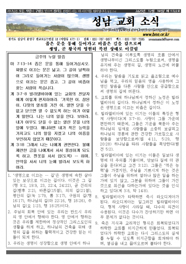 소식지_20251214 성남교회 0 26 4시간전 2025.12.12 15:17 소식지251214.hwp (229.0K) + 1 2025.12.12 15:17 소식지251214.pdf (267.8K) + 1 소식지_20251214