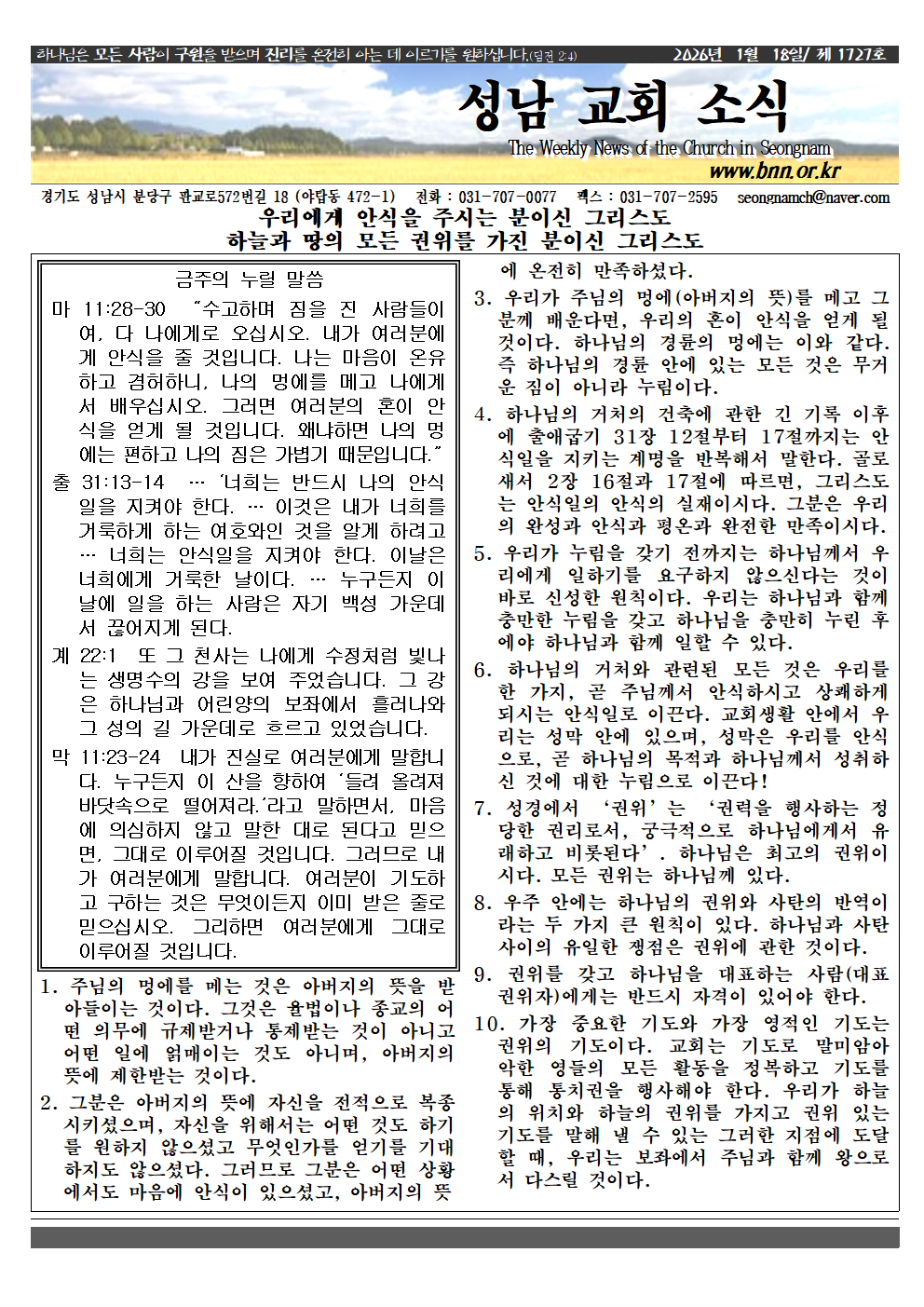 소식지_20260118 성남교회 0 28 2시간전 2026.01.16 15:53 소식지260118.hwp (420.5K) + 1 2026.01.16 15:53 소식지260118.pdf (246.9K) + 0 소식지_20260118