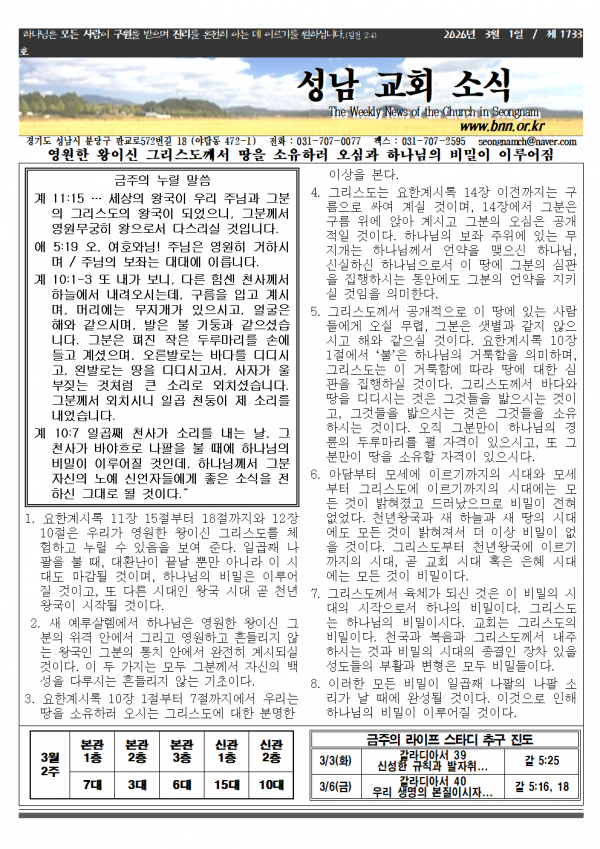 소식지_20260201 성남교회 0 637 01.30 14:51 2026.02.27 14:38 소식지260301.hwp (204.5K) + 16 2026.02.27 14:38 소식지260301.pdf (293.3K) + 17 소식지_20260201