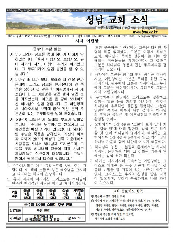 소식지_20260215 성남교회 0 35 3시간전 2026.02.13 15:19 소식지260215.hwp (204.5K) + 3 2026.02.13 15:19 소식지260215.pdf (286.3K) + 2 소식지_20260215