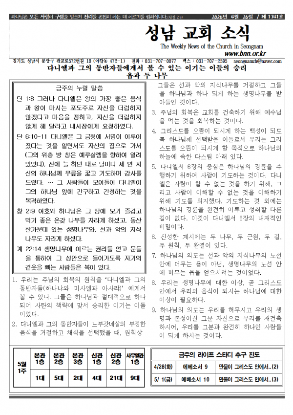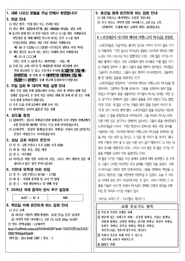 소식지_20260426 성남교회 0 45 8시간전 2026.04.24 15:27 소식지260426.hwp (240.0K) + 2 2026.04.24 15:27 소식지260426.pdf (398.3K) + 1 소식지_20260426