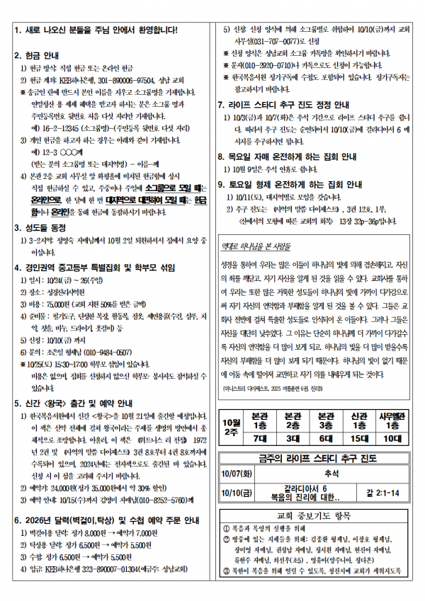 소식지 20251005 성남교회 0 372 10.03 15:36 2025.10.03 15:36 소식지251005.hwp (228.5K) + 14 2025.10.03 15:36 소식지251005.pdf (287.4K) + 12 소식지 20251005