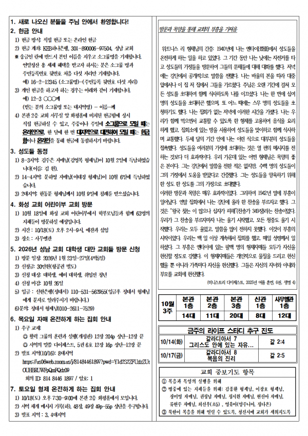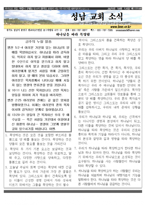 소식지 20251012 성남교회 0 266 10.10 15:57 2025.10.10 15:57 소식지251012.hwp (208.0K) + 12 2025.10.10 15:57 소식지251012.pdf (261.5K) + 14 소식지 20251012