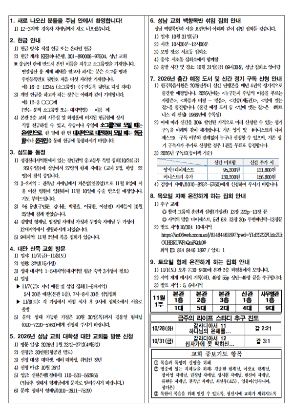소식지_20251026 성남교회 0 51 10.24 15:08 2025.10.24 15:08 소식지251026.hwp (202.5K) + 3 2025.10.24 15:08 소식지251026.pdf (254.3K) + 1 소식지_20251026