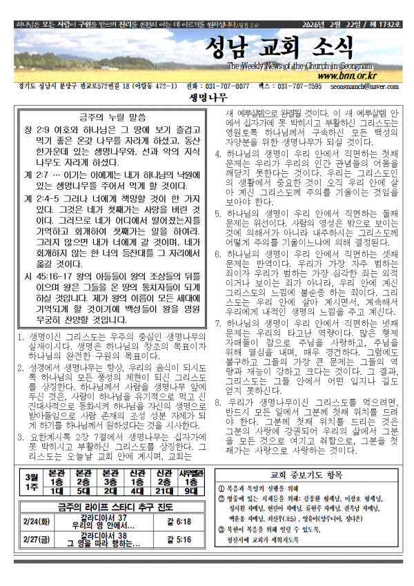 소식지_20260222 성남교회 0 48 4시간전 2026.02.21 07:49 소식지260222.hwp (218.5K) + 0 2026.02.21 07:49 소식지260222.pdf (282.9K) + 0 소식지_20260222