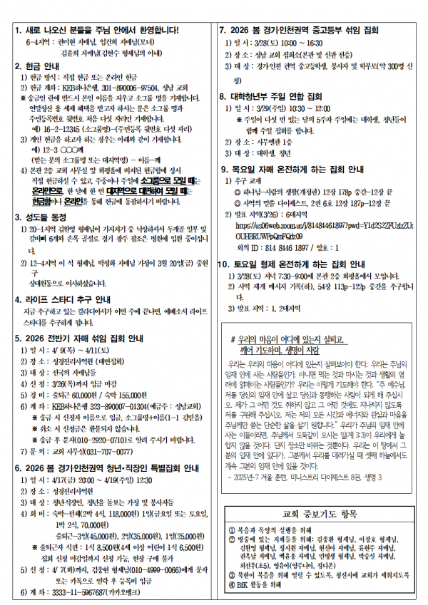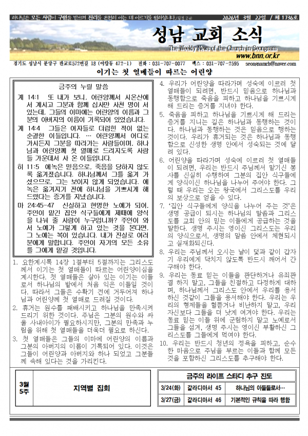 소식지_20260322 성남교회 0 30 3시간전 2026.03.20 16:07 소식지2603221.hwp (204.0K) + 2 2026.03.20 16:07 소식지2603221.pdf (295.5K) + 2 소식지_20260322