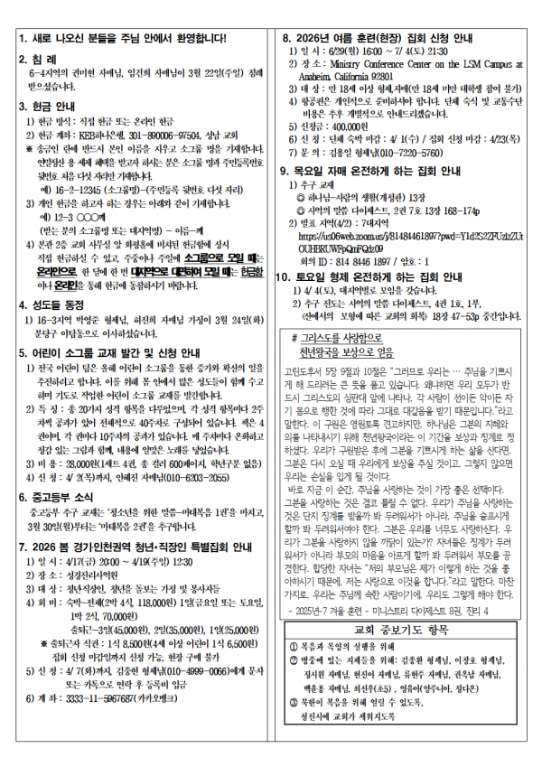 소식지_20260329 성남교회 0 20 2시간전 2026.03.27 16:51 소식지260329.hwp (204.5K) + 1 2026.03.27 16:51 소식지260329.pdf (286.5K) + 1 소식지_20260329