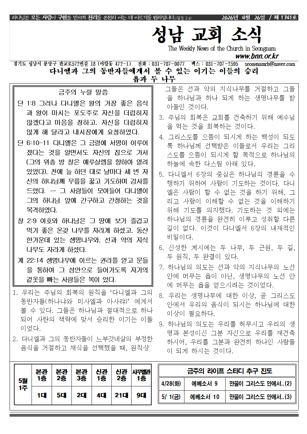소식지_20260426 성남교회 0 42 6시간전 2026.04.24 15:27 소식지260426.hwp (240.0K) + 2 2026.04.24 15:27 소식지260426.pdf (398.3K) + 1 소식지_20260426